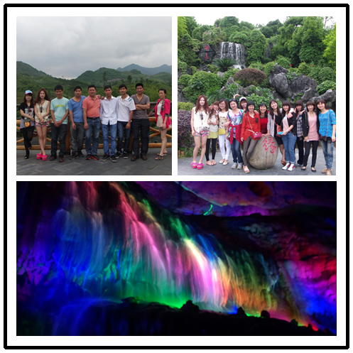 2013年4月30日-05月01日組織了公司員工連南兩日游,為了讓大家在繁忙的工作之余有身心放松的機會,我們遠離喧鬧繁華的都市,來到了山清水秀的魚水小桂林和熱情的三排瑤寨,坐著竹筏觀山游水,聽船夫唱山歌、猜謎語;和熱情的沙腰妹阿貴哥載歌載舞,樂趣連連....還有去到國家5A級景區--連州地下河,洞內有河,河上有橋,河中游船,觀賞著洞內的瀑布和奇形怪狀的鐘乳石,連連驚嘆洞中的奇觀景象...